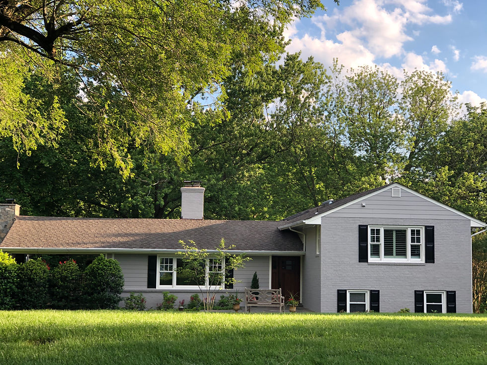 The home was decorated in the late 90's and no longer embodied the owner's flair and sense of style. We had a lot of fun reimagining and re-staging the space - adding lighting, curtains, area rugs and custom art. Painting the red brick exterior was a great improvement. This 1957 home went from dated to transitional and fresh. More photos to follow...